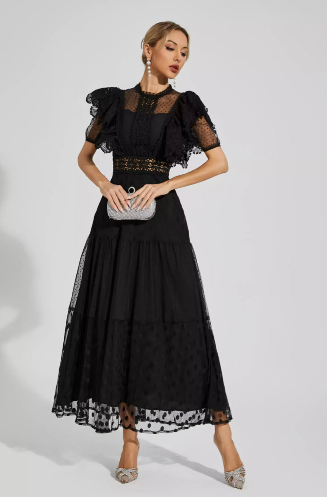 Noor Puantiyeli Siyah Maksi Elbise