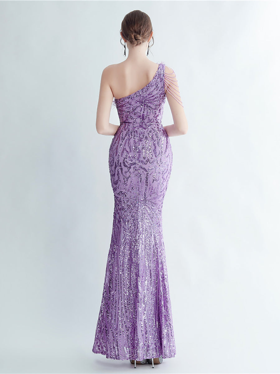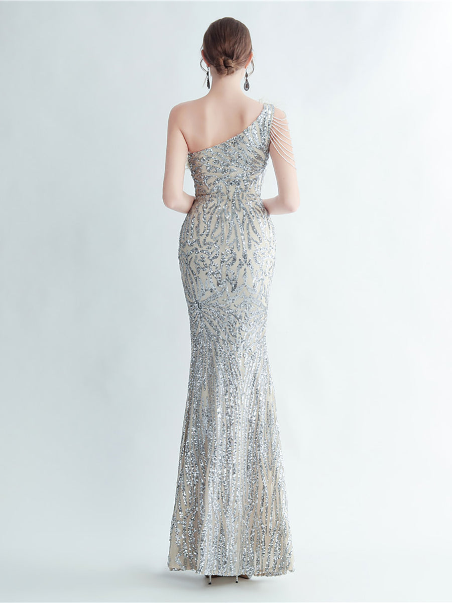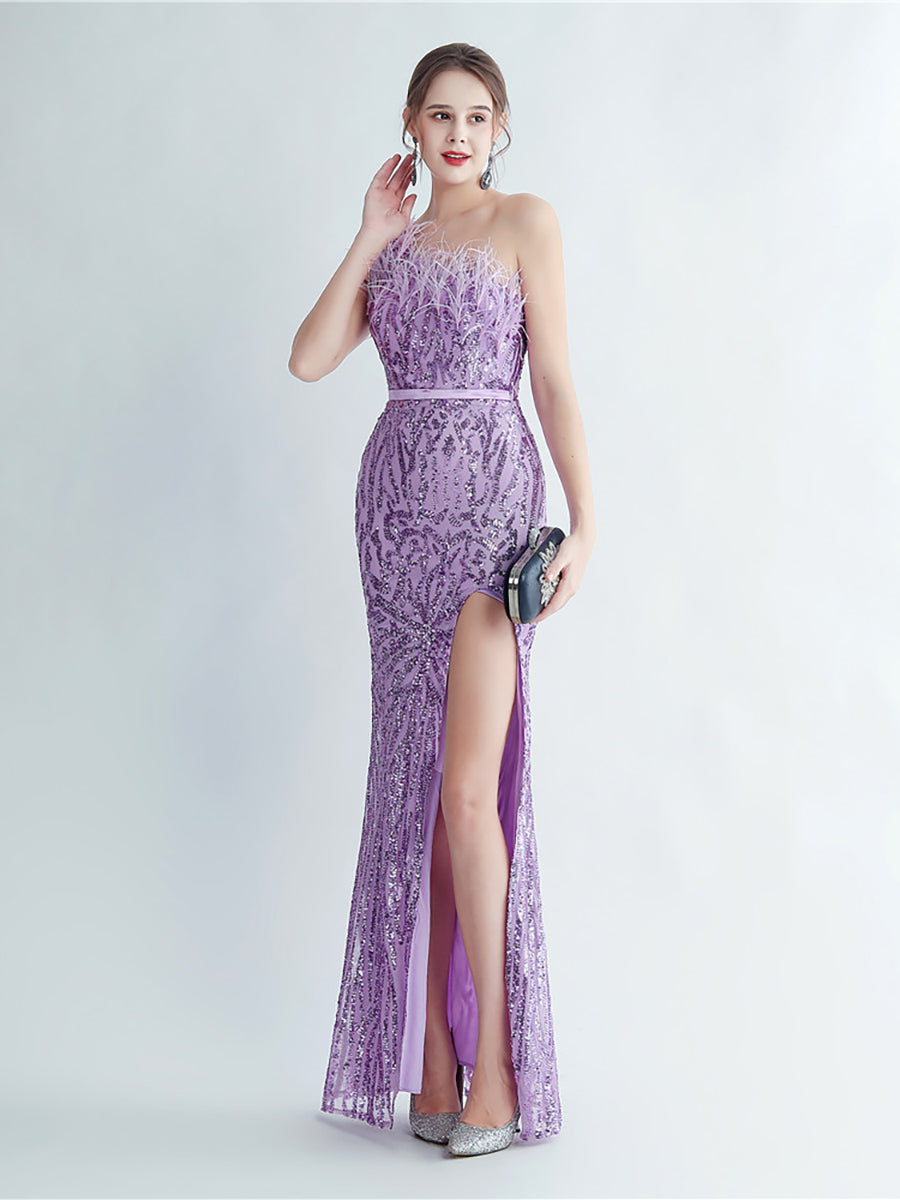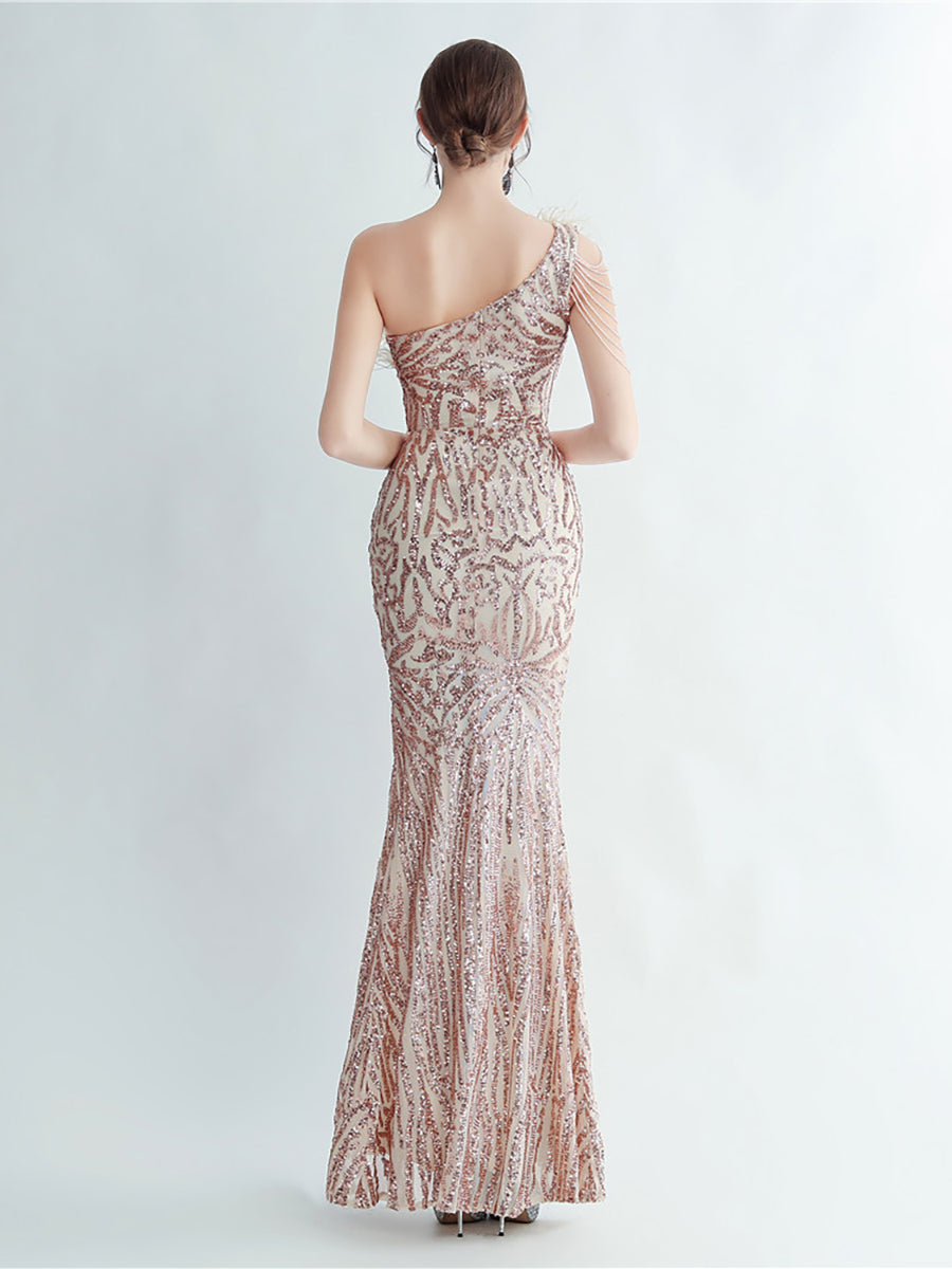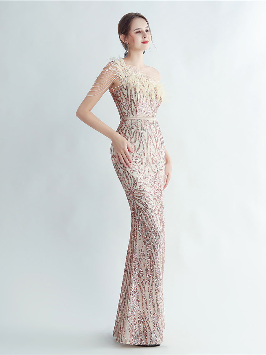 Bu zarif, tek omuzlu, tüy, boncuk ve payet detaylı siyah balo elbisesi, göz alıcı bir görünüm için tüyleri, boncukları ve payetleri bir araya getiriyor. Asimetrik yaka benzersiz bir dokunuş katarken, vücuda oturan tasarımı figürünüzü kusursuzca vurguluyor. Balo veya herhangi bir özel etkinlik için mükemmel olan bu elbise, kesinlikle dikkat çekmenizi sağlayacak.
