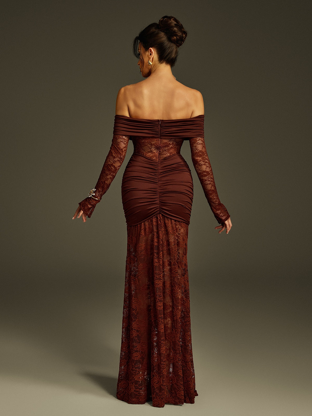 Poseidon Omuzsuz Dantel Maxi Elbise