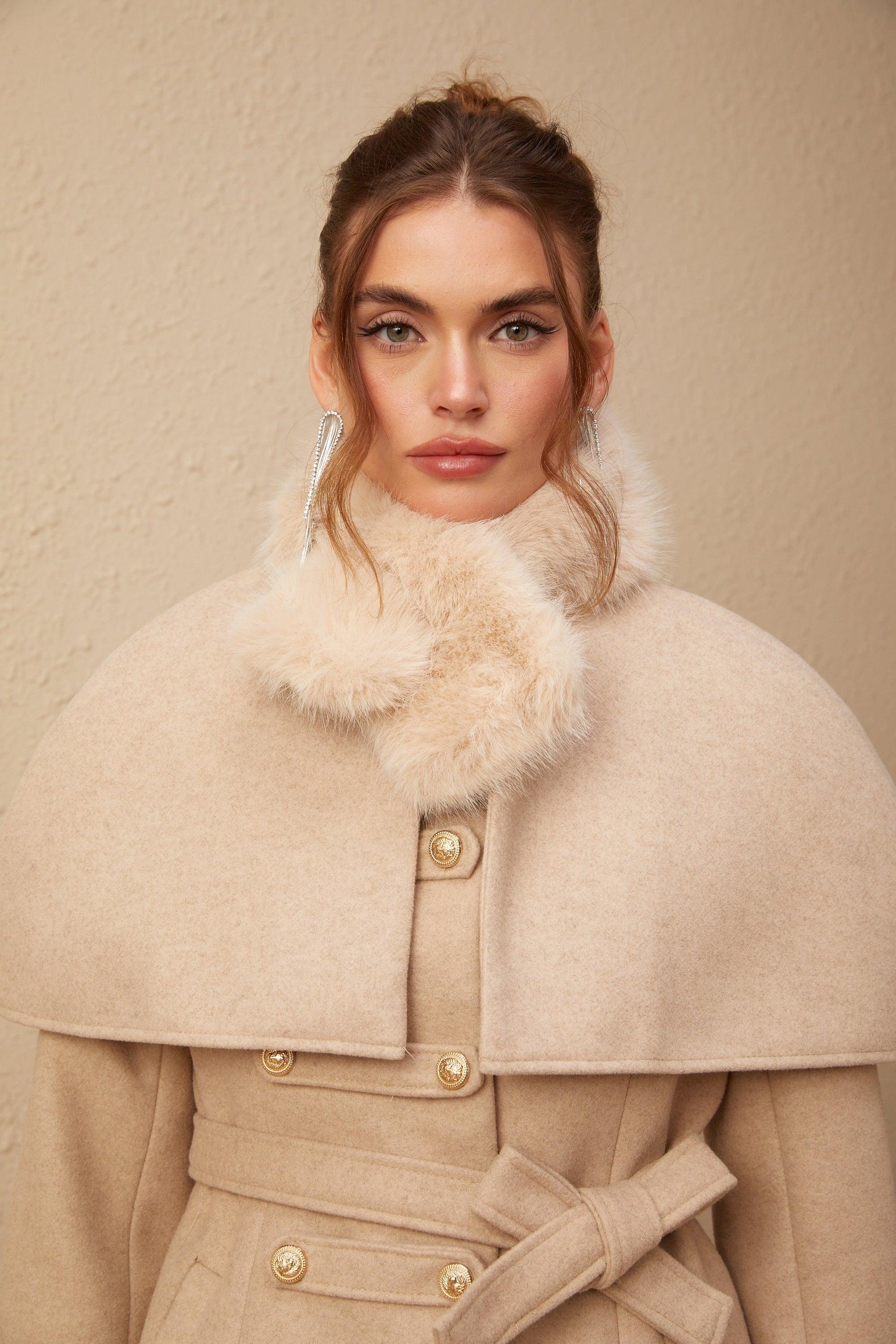 Peluş Detaylı Çıkartılabilen Pelerinli Kaban