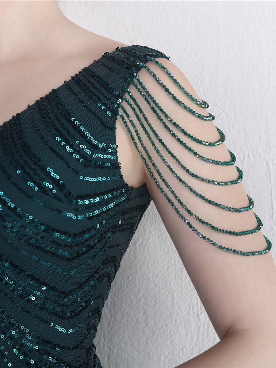 - Detay: Boncuklu zincir, sırtı açık, denizkızı