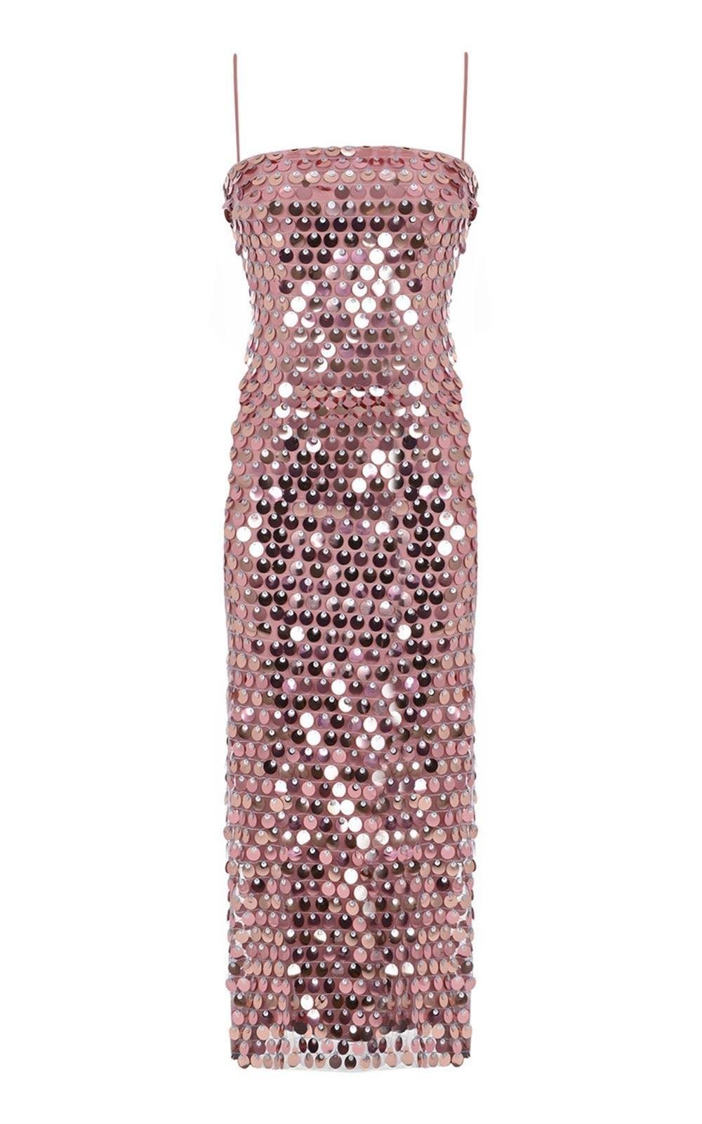 Işıltılı Denizkızı Pullu Split Maxi Elbise