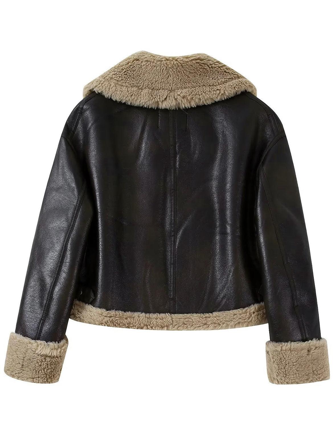 Teddy Suni Deri Fermuarlı Kaban