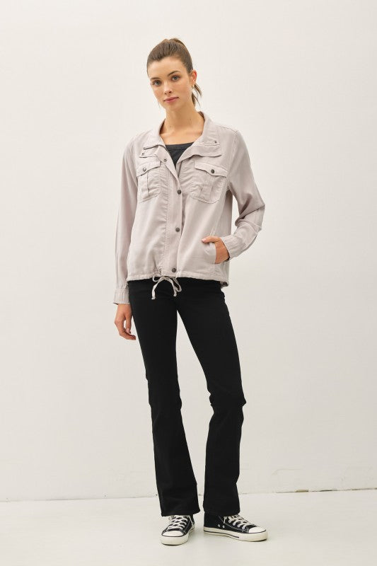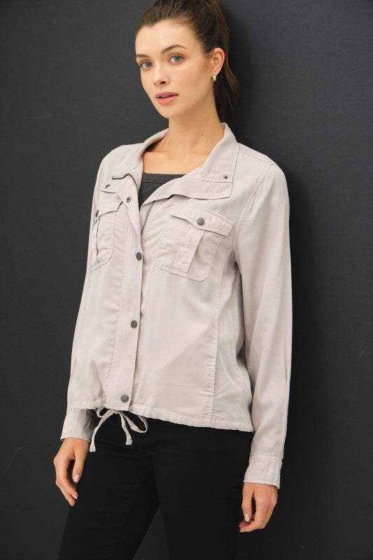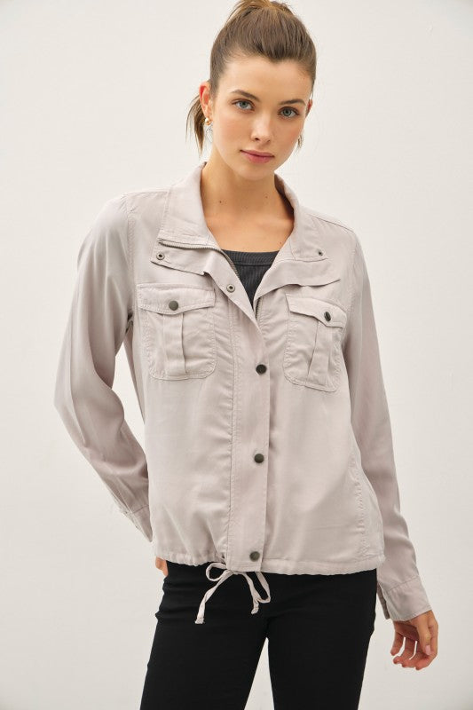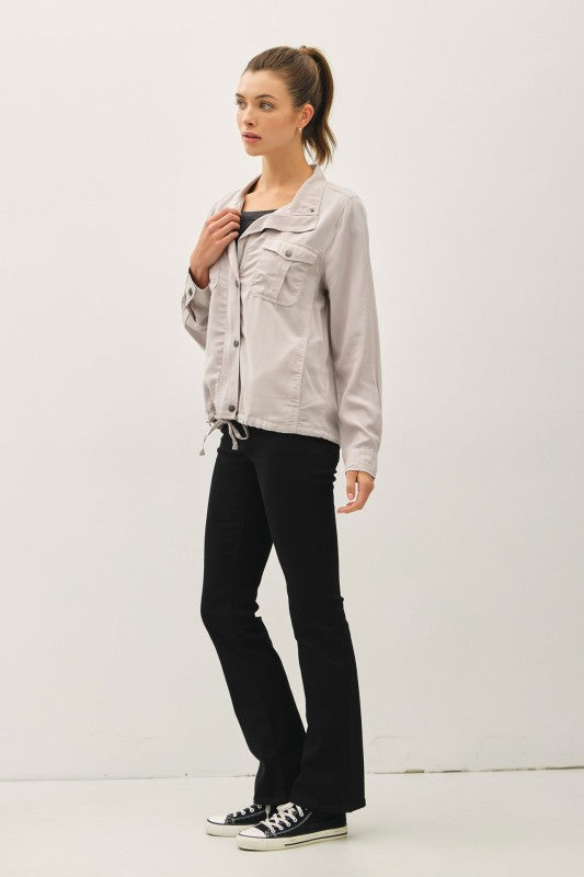 Şık ve fonksiyonel bir görünüm için gardırobuna ekle! Kate Utility Ceket, yüksek yaka tasarımı, çift fermuar ve çıtçıtlı ön kapamasıyla dikkat çeker. Büzgü detaylı etek ucu sayesinde hem rahat hem de modern bir siluet sunar. Basic tişörtler veya crop top ve jean/şort kombinleriyle kolayca stilini tamamlayabilirsin.
