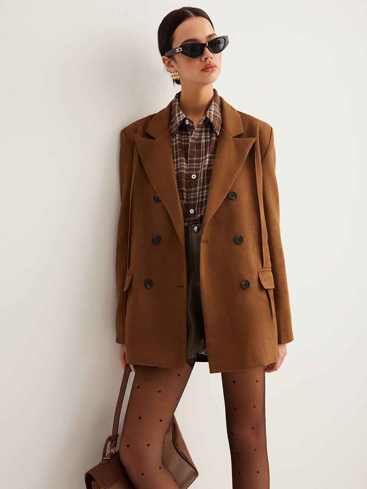 Vintage Caramel Double-Breasted Ceket