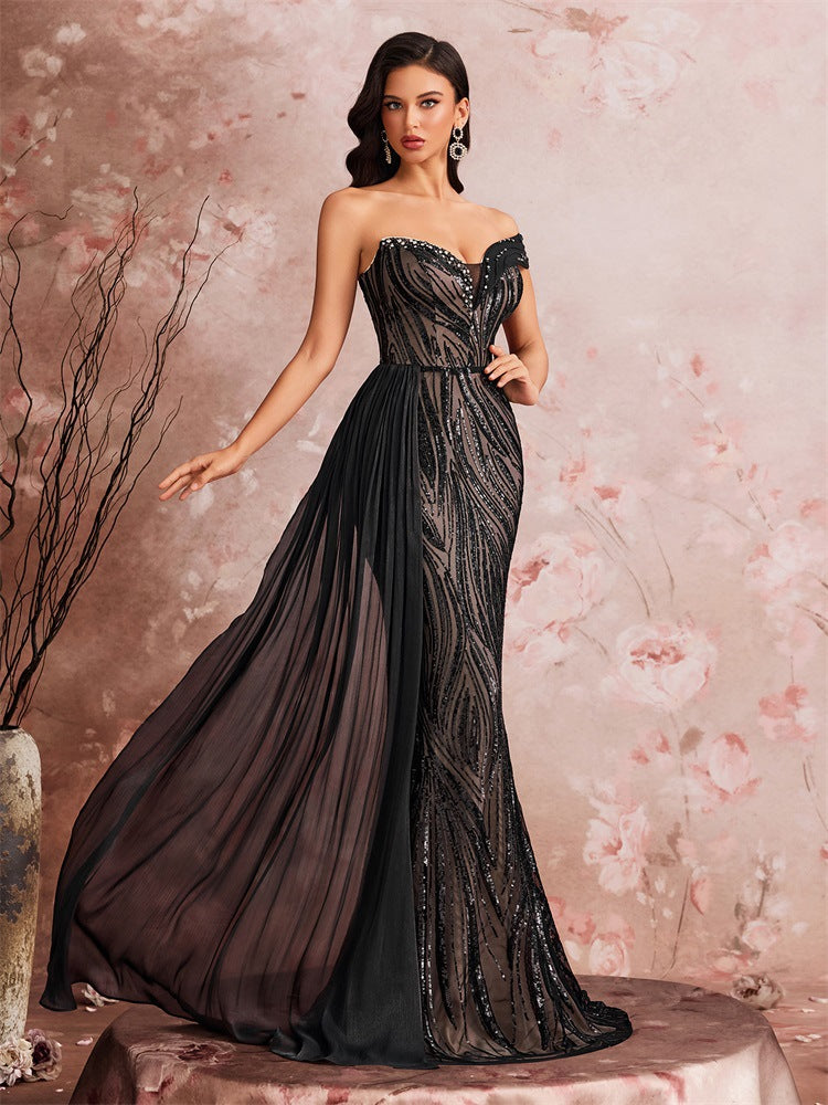 Giselle Payetli Omuzsuz Maxi Elbise