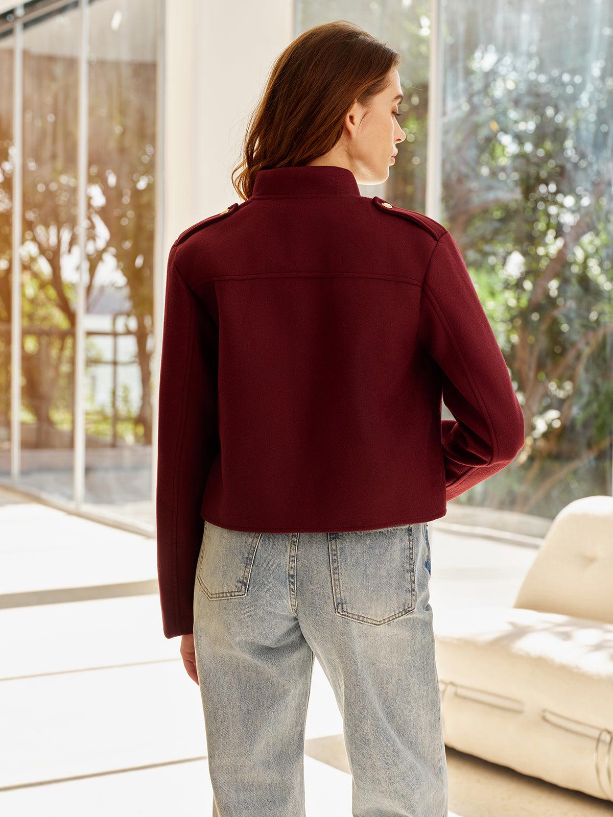 - Bordo: Asalet ve zarafetin simgesi olan bordo, güçlü bir duruş ve sıcak bir his yaratır. Altın düğme detaylarıyla birleştiğinde görkemli ve etkileyici bir görünüm sunar. Bu renk, her mevsim için şıklığı temsil eder.