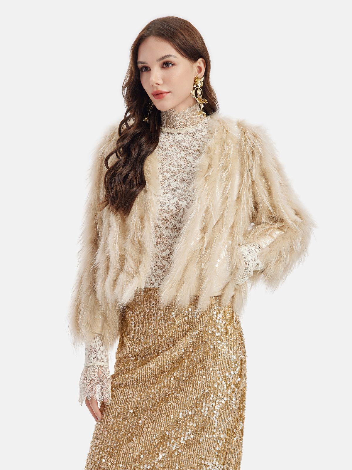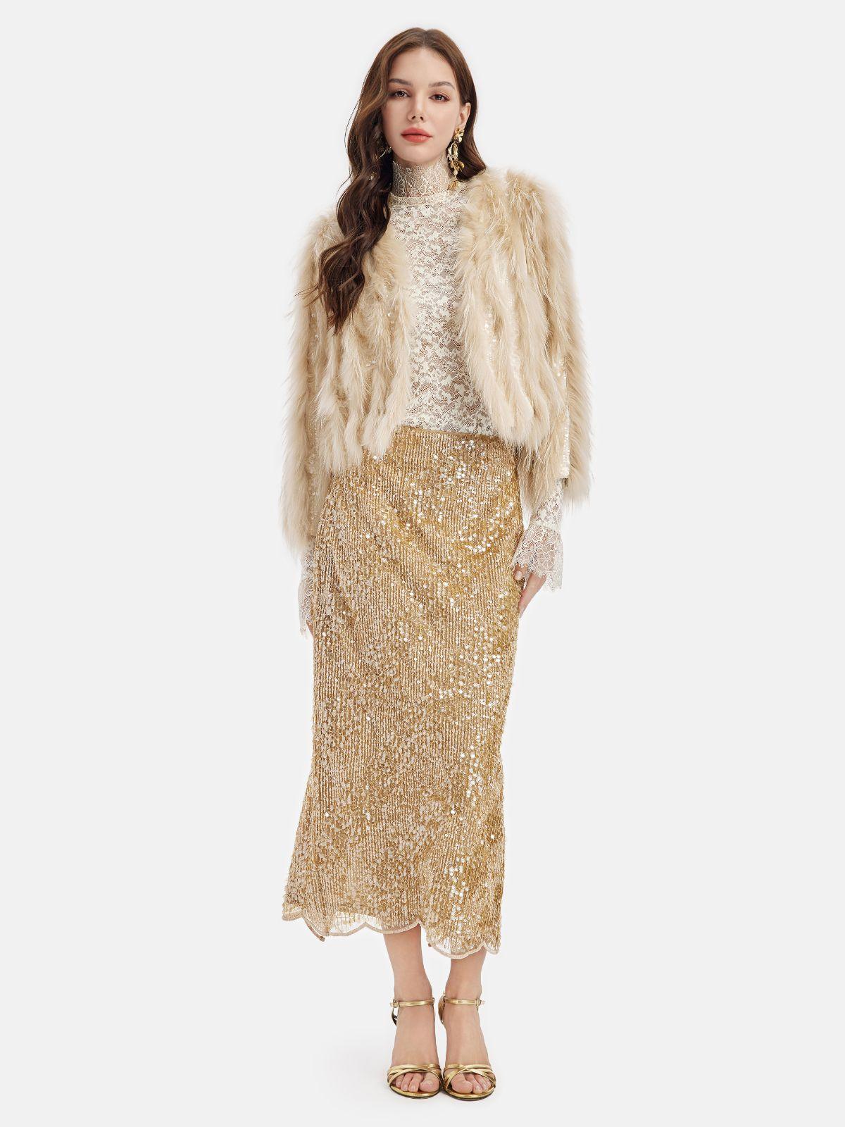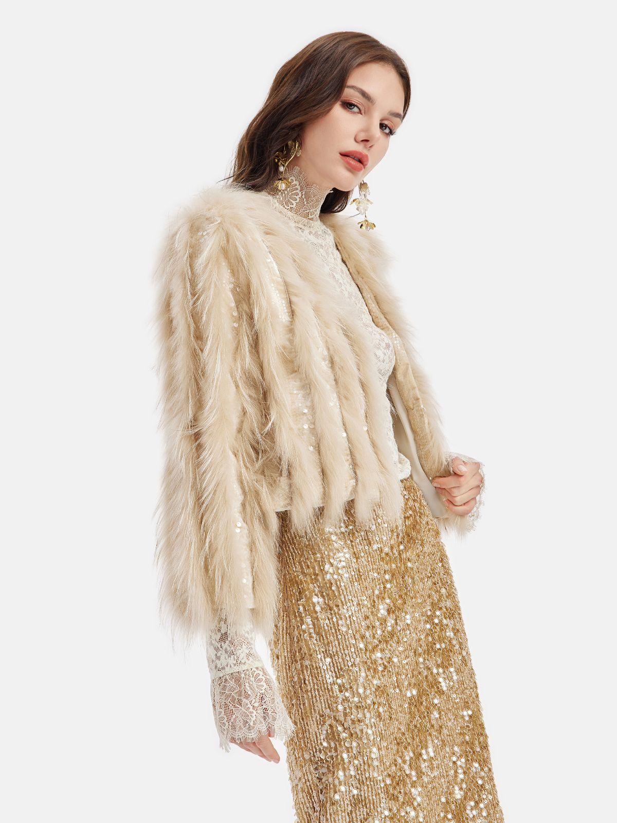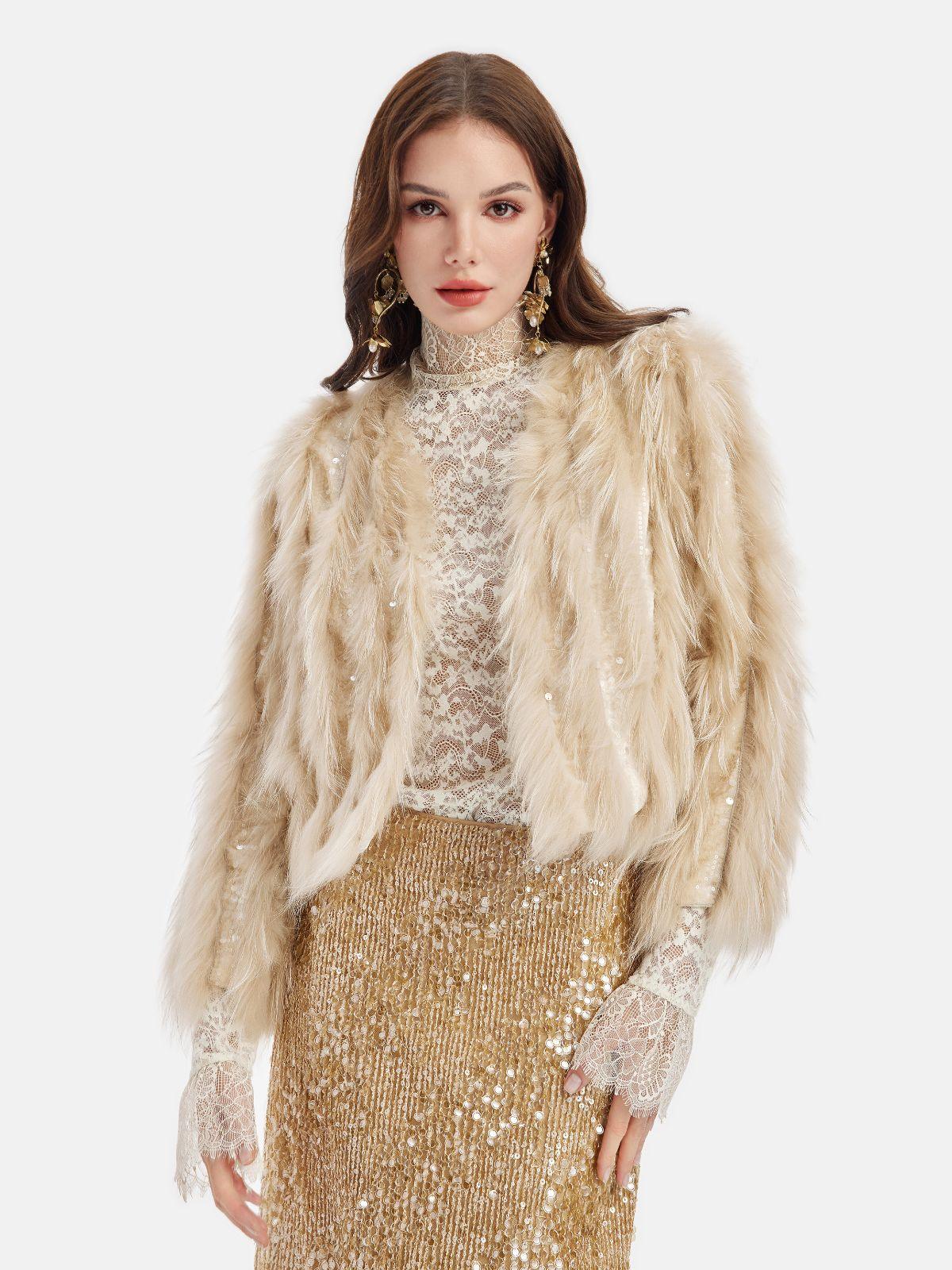 Tüy Detaylı Işıltılı Ceket