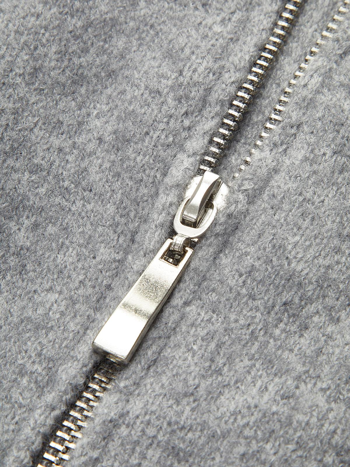V Yaka Oversize Fermuarlı Triko Ceket